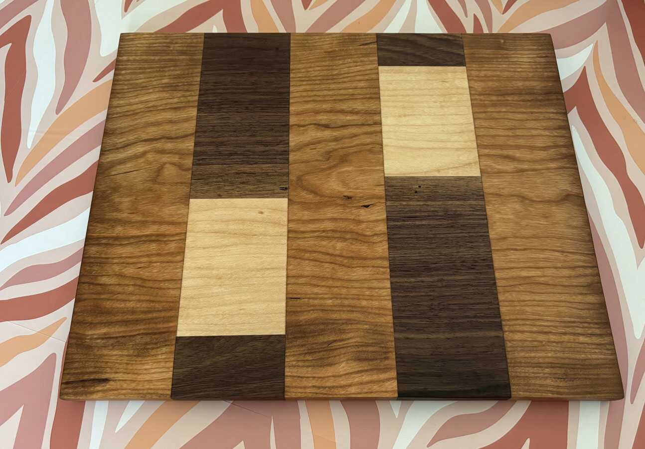 This unique hardwood patchwork cutting or serving board is crafted from scraps of Alder, Maple, and Walnut, making it a standout piece for any kitchen. It’s perfect for your next dinner gathering or family holiday. Don’t miss out—grab it today before it’s gone!