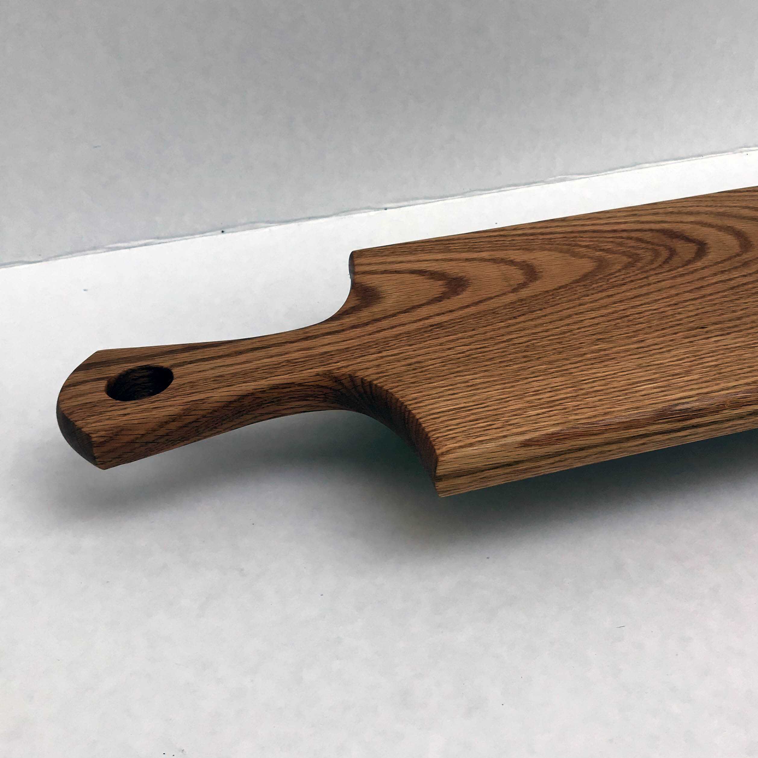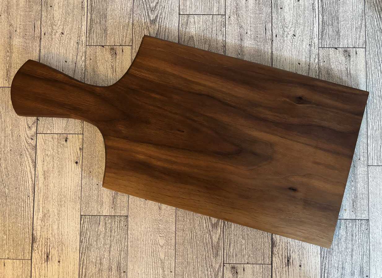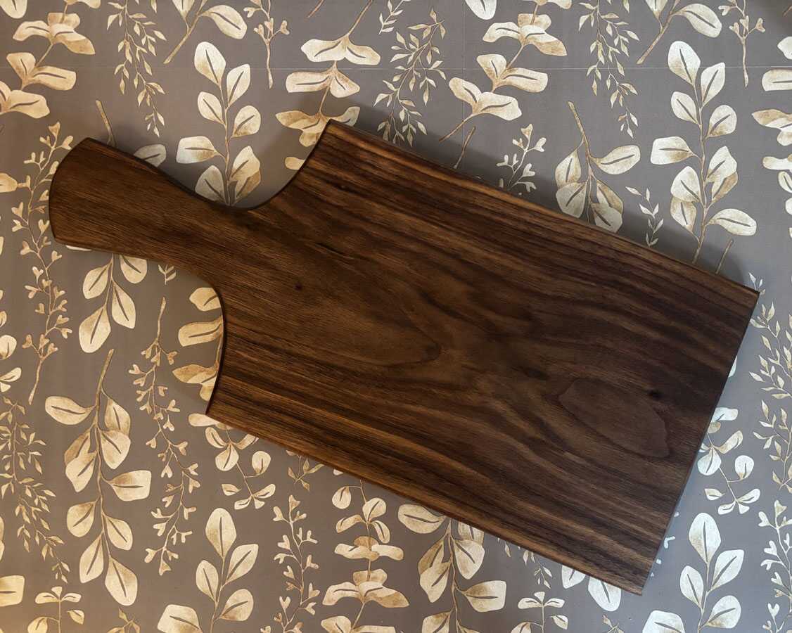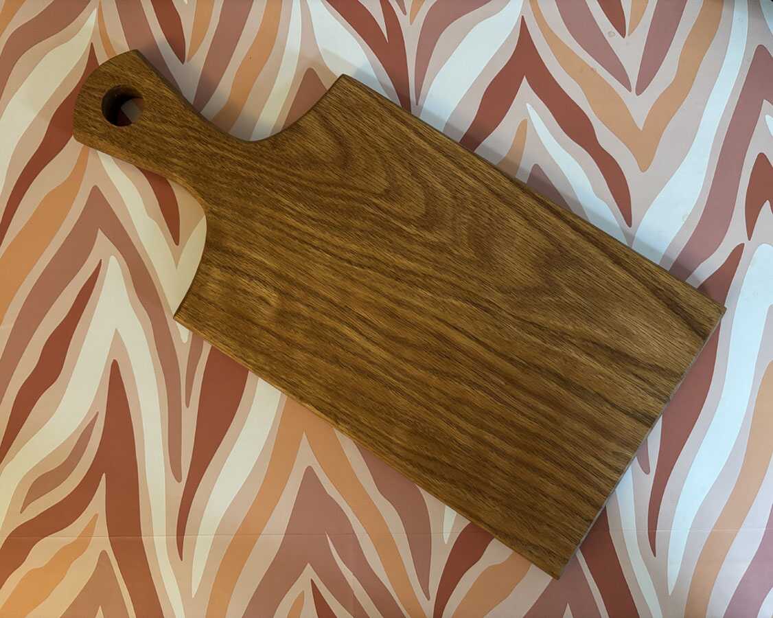 Indulge in a beautiful hardwood serving board with a handle! They are ideal for serving homemade bread or a delightful charcuterie spread at your next gathering or family dinner. Crafted from solid oak or walnut, each board is finished with food-grade mineral oil and sealed with a wax finish. These boards are a must-have, so be sure to get yours today!