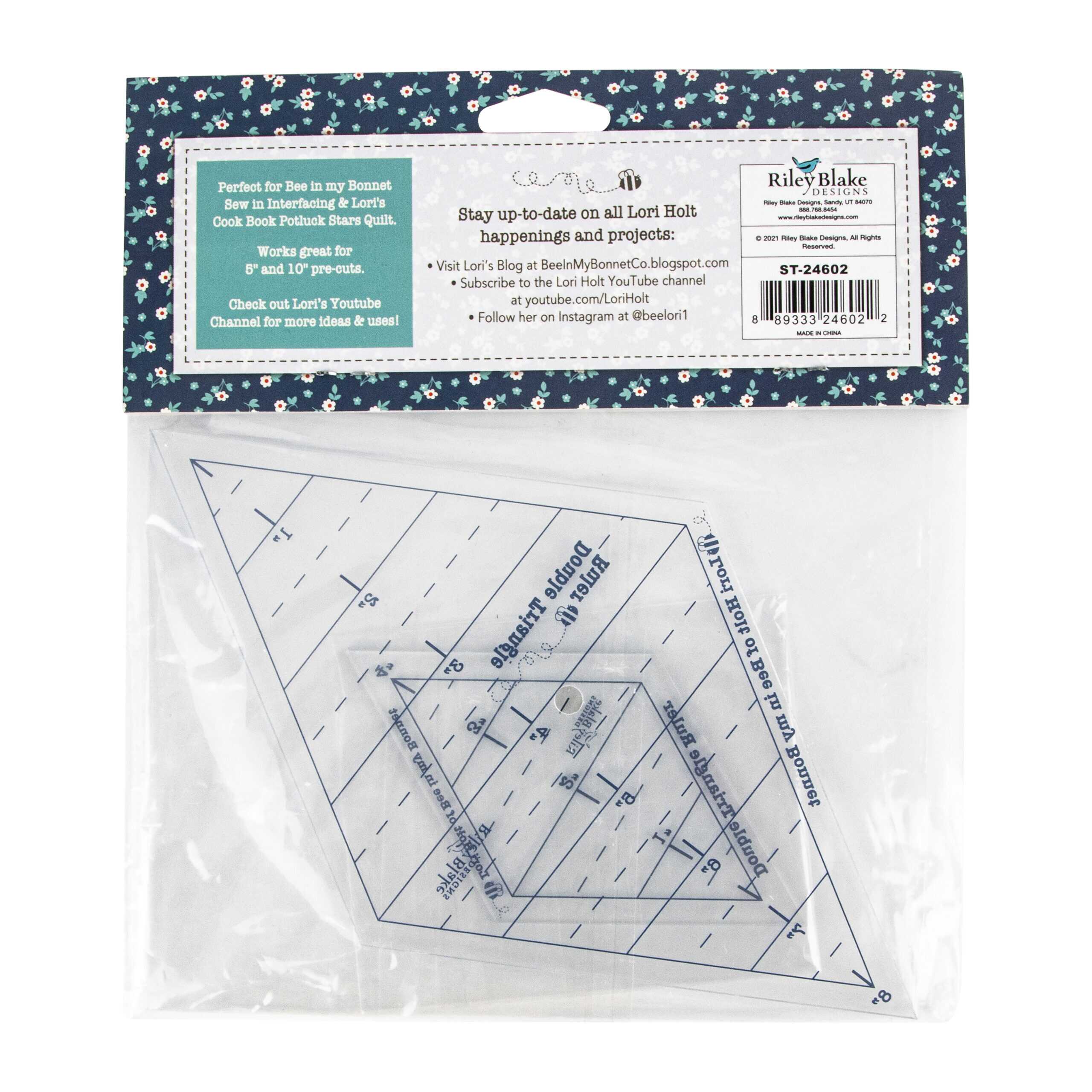 The Lori Holt Double Triangle Ruler set features two templates measuring 4″ and 8″ that are perfect for use with 5″ stackers or 10″ stackers.