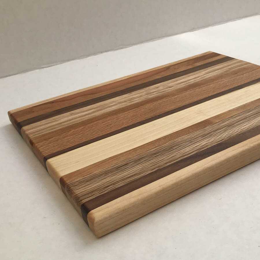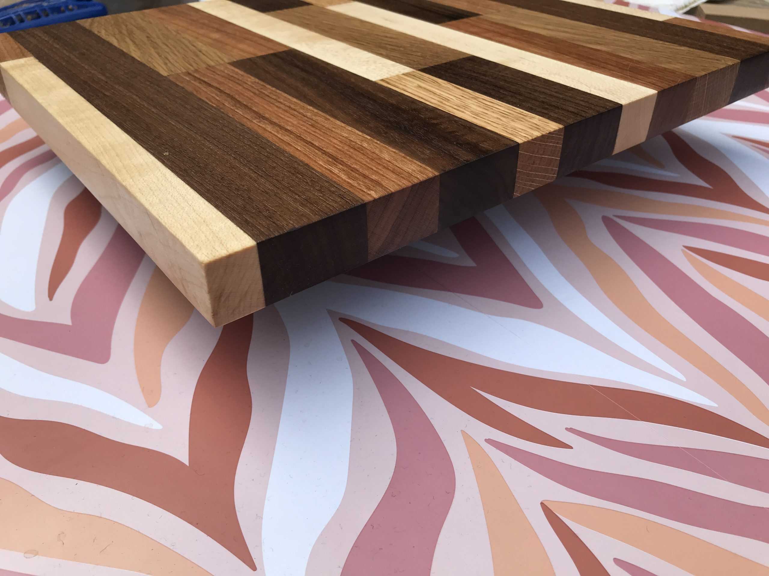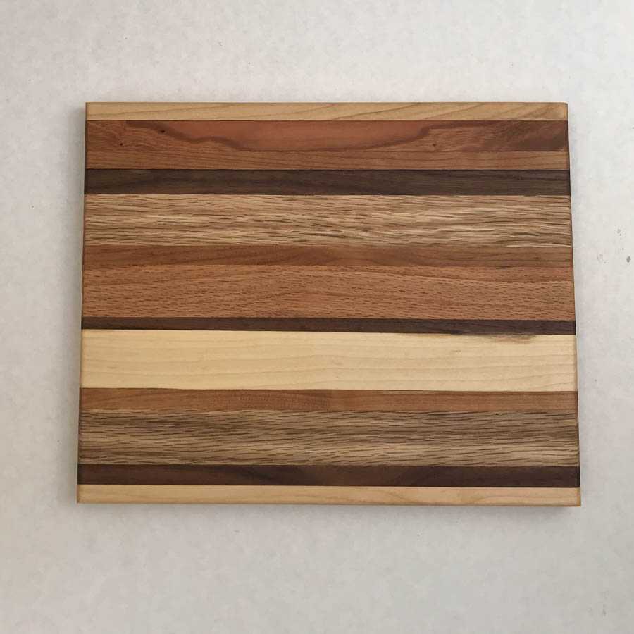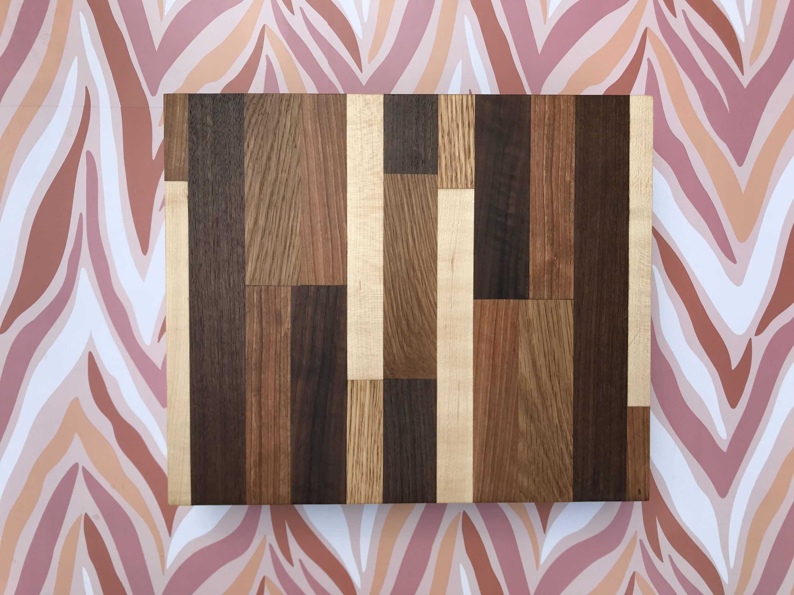 Chopping BoardsIntroducing small, handcrafted boards made from scraps of high-quality hardwood. These versatile boards are perfect for chopping veggies, serving a small charcuterie assortment, or using as a trivet for another serving dish. With strips of oak, walnut, maple, mahogany, and alder, the striped board measures approximately 10-1/2” x 8-3/4” x 1⁄2” and the patchwork board measures 12-1/2″ x 10-1/2″ x 1. Finished using a food-grade mineral oil blend and sealed with our handcrafted wax sealer, these one-of-a-kind boards are a must-have for any kitchen or serving space. Elevate your culinary experience today!